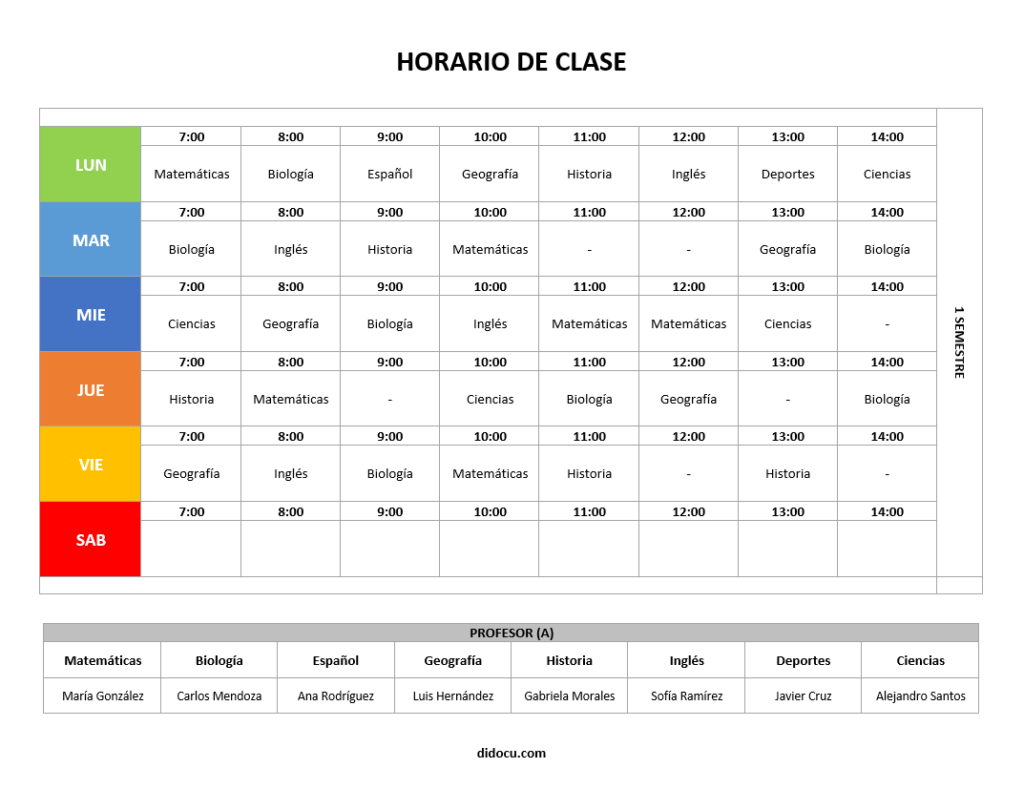Diseñar el siguiente horario en excel, guardarlo con el nombre de los integrantes y entregarlo en Classroom.
